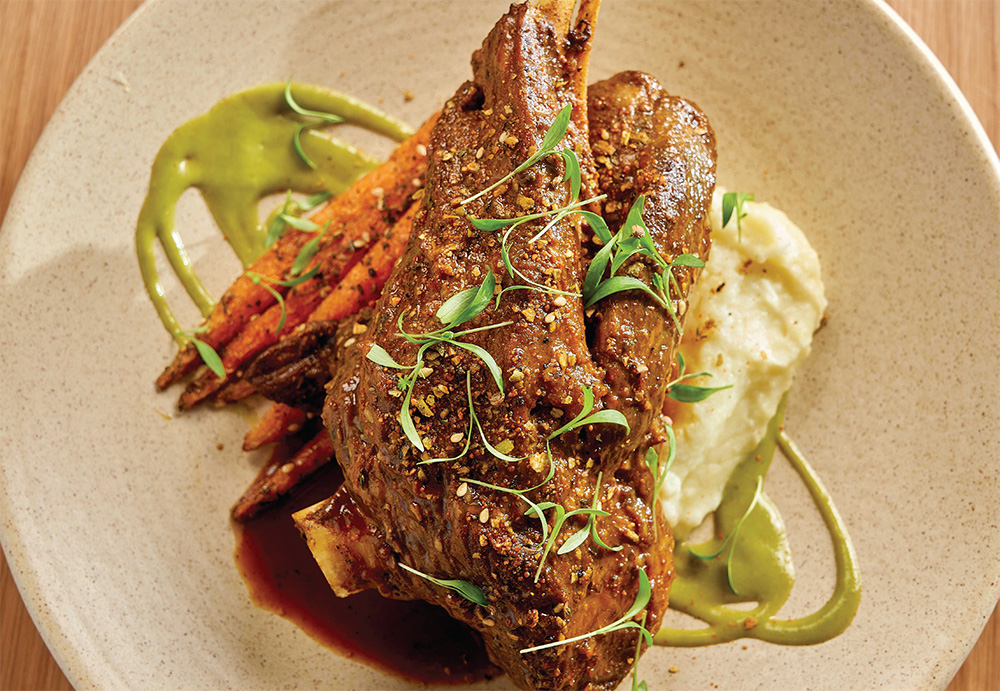 This Gather bestseller is also gluten friendly. This dish includes potato purée, cilantro pesto, za’atar roasted baby carrots and the braised lamb.